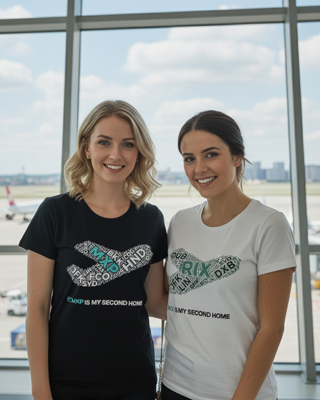 La particolarità è che potrai personalizzare il prodotto scegliendo il tuo aeroporto preferito, che verrà evidenziato nel design (come MXP o JFK nell’esempio). Ideale per le viaggiatrici, perfette per chi considera un aeroporto come la propria “seconda casa”.