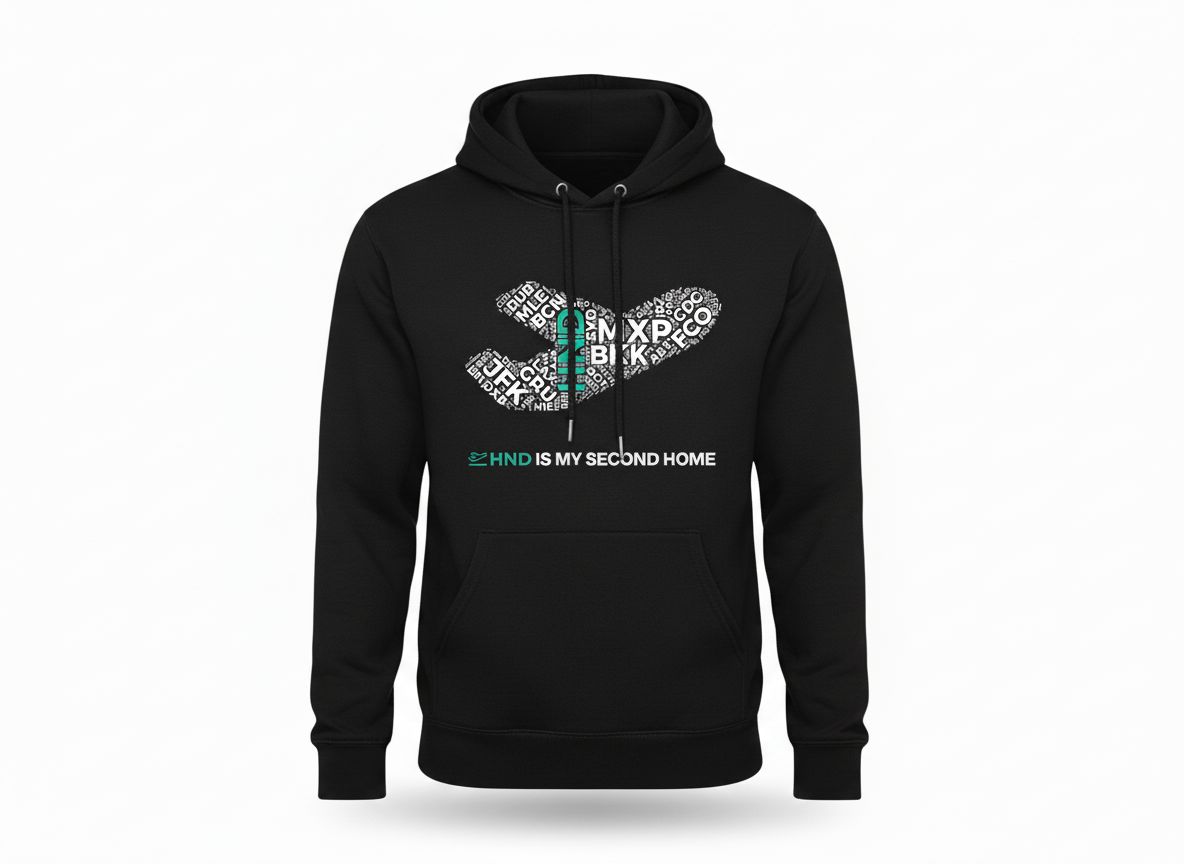 L’avete richiesta ed è arrivata! La nuova felpa nera tag cloud con le sigle degli aeroporti racchiuse all’interno del simbolo di The Flight Club. Scegli il tuo aeroporto preferito!